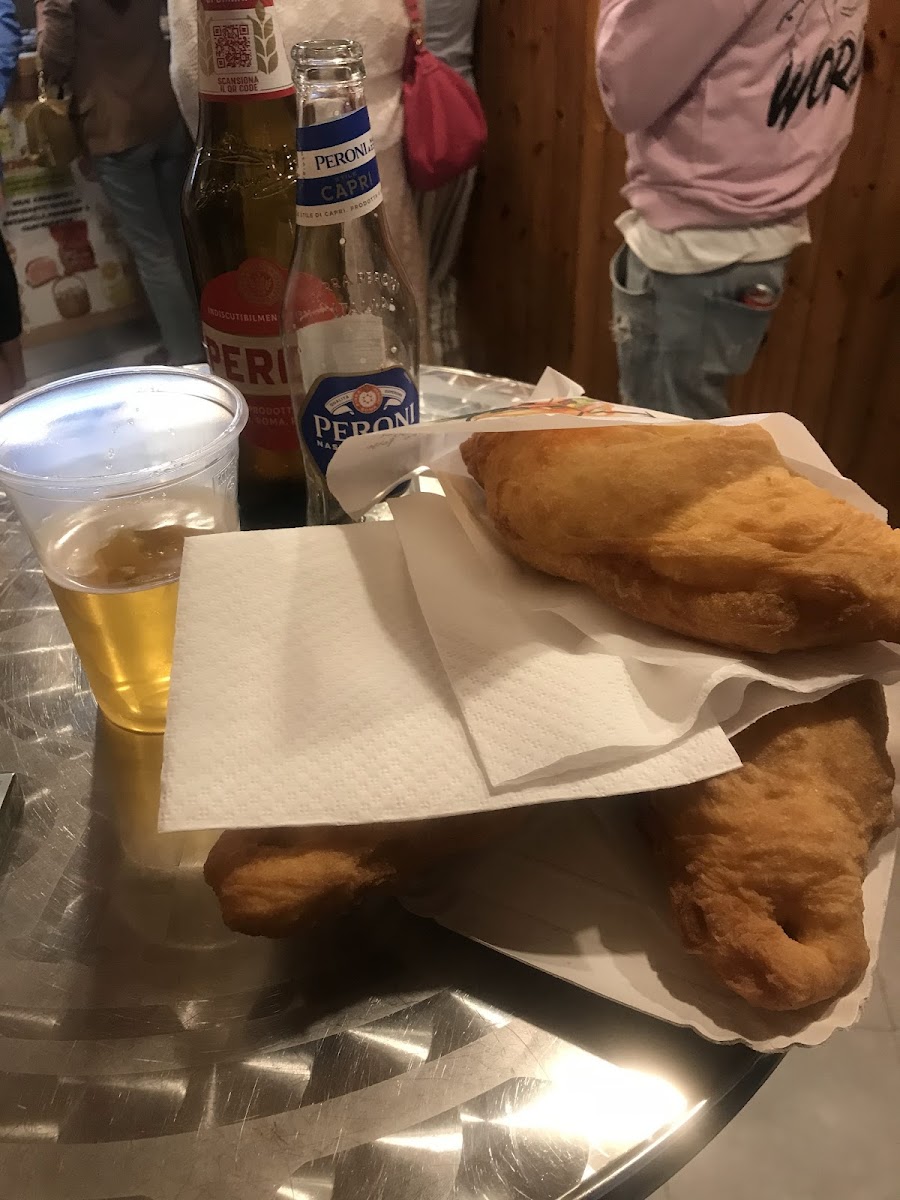Bardzo dobre panzerotto - duże porcje i syte, świeżo robione 4 euro, dobra pizza - 2,5 euro za kawałek,czynne do późna. Pozdrawiamy właściciela!